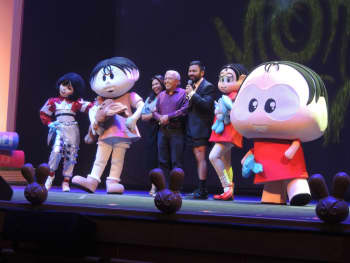 Mauricio de Sousa com a personagem Milena, na Corrida Donas da Rua, em dezembro de 2017. Imagem: Reprodução/G1.